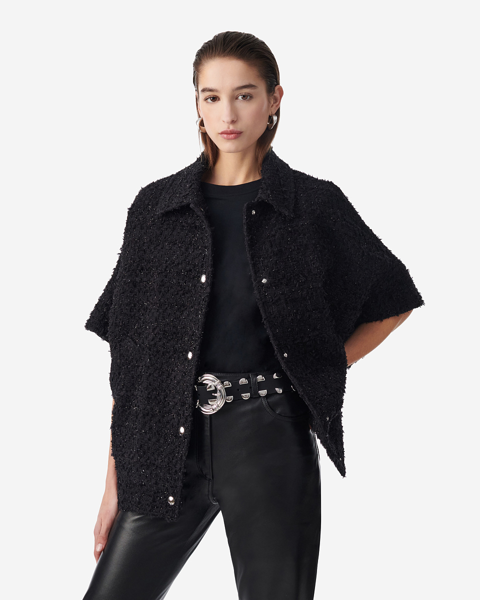 Твид IRO гармонично сочетается с кожей — брюками, сумками и аксессуарами, создавая стильные и тёплые ансамбли с характером.